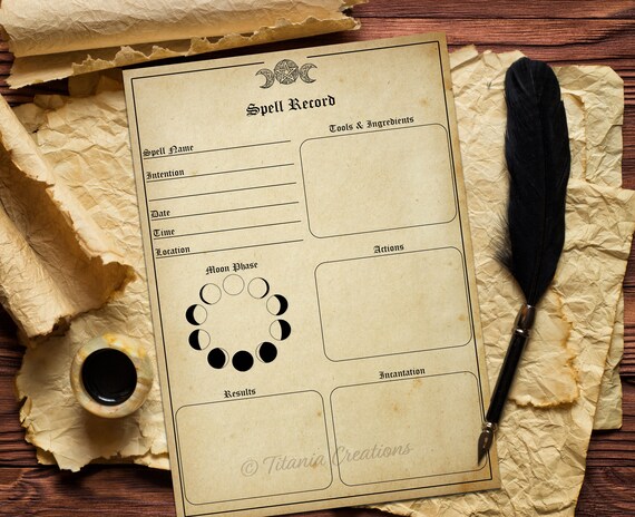 Spell Record Printable Template Pages Witchcraft Book Of Etsy